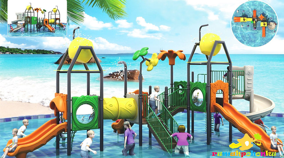 rumahpohonku membuat water playground untuk di kolam renang atau sarana bermain basah dengan berbagai alternatif desain.